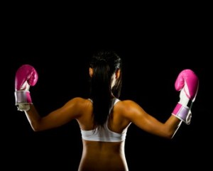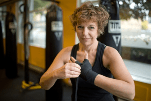 At the end of the hour, my head and body are sopping wet, my face is flushed and puffy and I look like a small, sweaty version of Billy Crystal, thanks to the out-of-control chemo curls. But I don’t care. Despite my long standing position as a girly girl, despite my overwhelming urge to “pass” (and trust me, the missing eyebrows are a dead giveaway), I’ve decided I’m not there to look pretty. Or normal. Or nice. I’m there to learn how to box. I’m there to get strong. I’m there to do whatever I can do to kick cancer’s sorry ass.